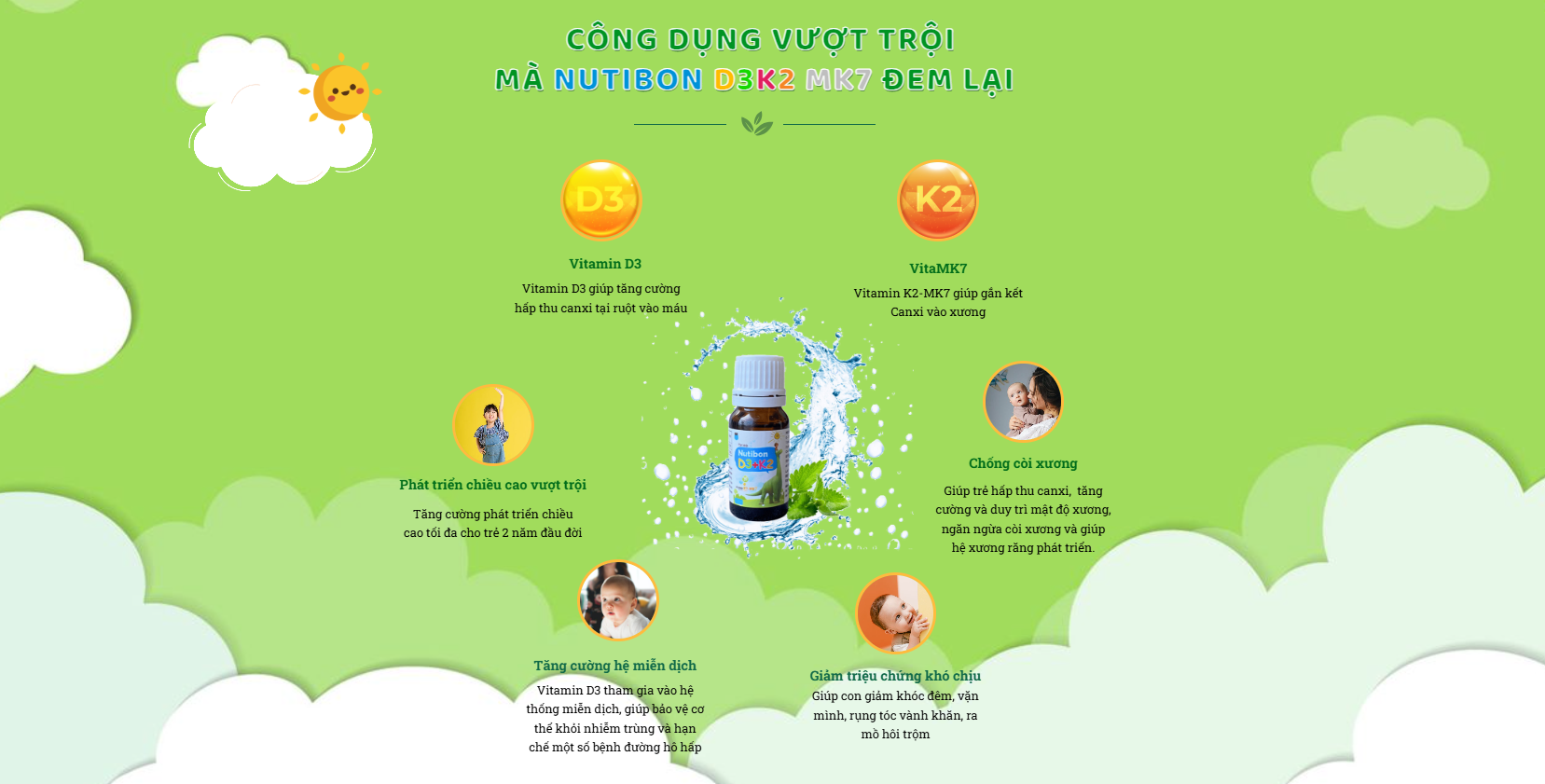 Bổ sung vitamin D3 và K2 cho trẻ đang trong giai đoạn phát triển chiều cao là điều quan trọng mà các bà mẹ cần quan tâm. Vitamin D3+K2 là sản phẩm bổ sung Vitamin D3K2 dạng nhỏ giọt, giúp tăng trường chiều cao vượt trội, được nhập Khẩu Từ Tây Ban Nha, giải quyết nhanh tình trạng kém phát triển ở trẻ như còi xương, kém hấp thu canxi ở trẻ. Người ta còn gọi D3+K2 là mặt trời thu nhỏ trong cơ thể của bé.